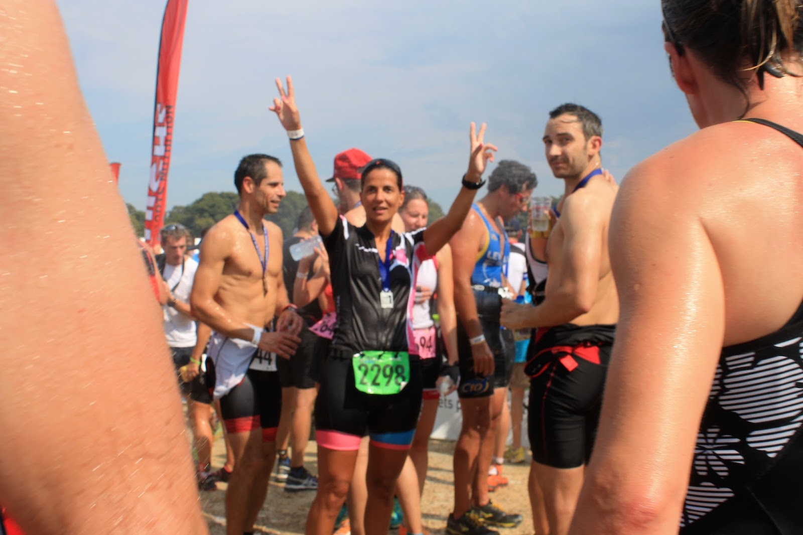 Je passe la ligne d'arrivée, je vois mes enfants et ils me disent "ça y est tu l'as fait !! t'es une championne!". Rien de plus beau que ça à l'arrivée ! Oui je l'ai fais mon premier triathlon juste avec quelques mois d'entrainements (en vélo et natation).